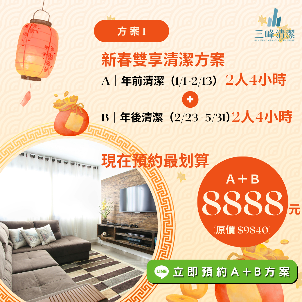 別怕!三峰清潔【兩大新春超殺方案】助您一臂之力,優雅過好年!